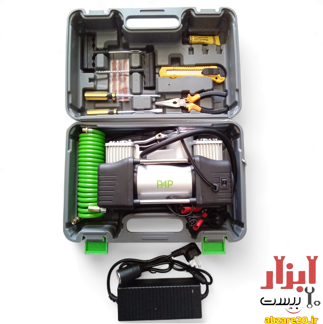 پمپ باد فندکی دو سیلندر پی ای پی مدل AC-1502 نوعی از کمپرسورهای هواست که به دلیل ابعاد و اندازههای کوچکی که دارد به راحتی قابل حمل بوده و به دلیل همین ابعاد، به آن پمپ باد فندكی میگویند. لازم به ذکر است که این دستگاه، از انرژی باتری ماشین تغذیه میکند.